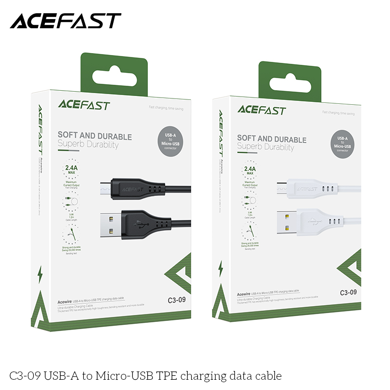 Cáp sạc ACEFAST C3-09 USB-A sang Micro-USB, dòng điện lên đến 2,4A, chiều dài 1,2m, chất liệu TPE