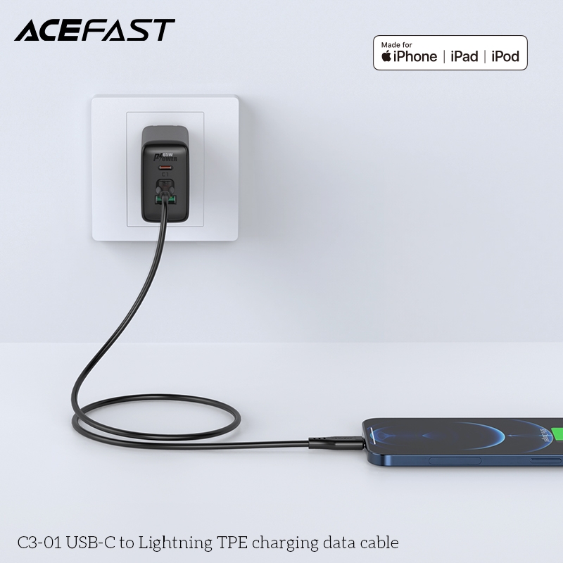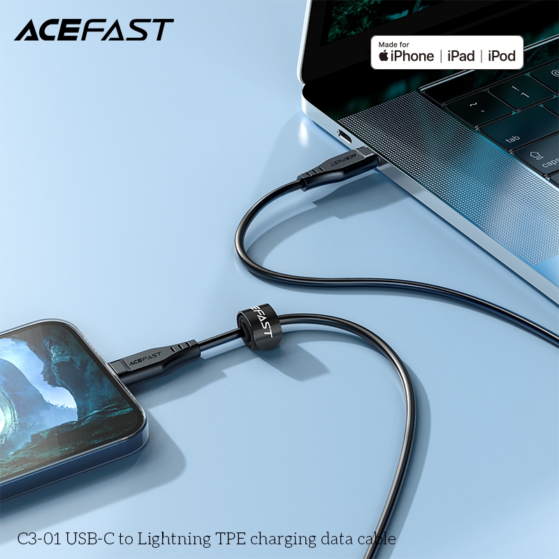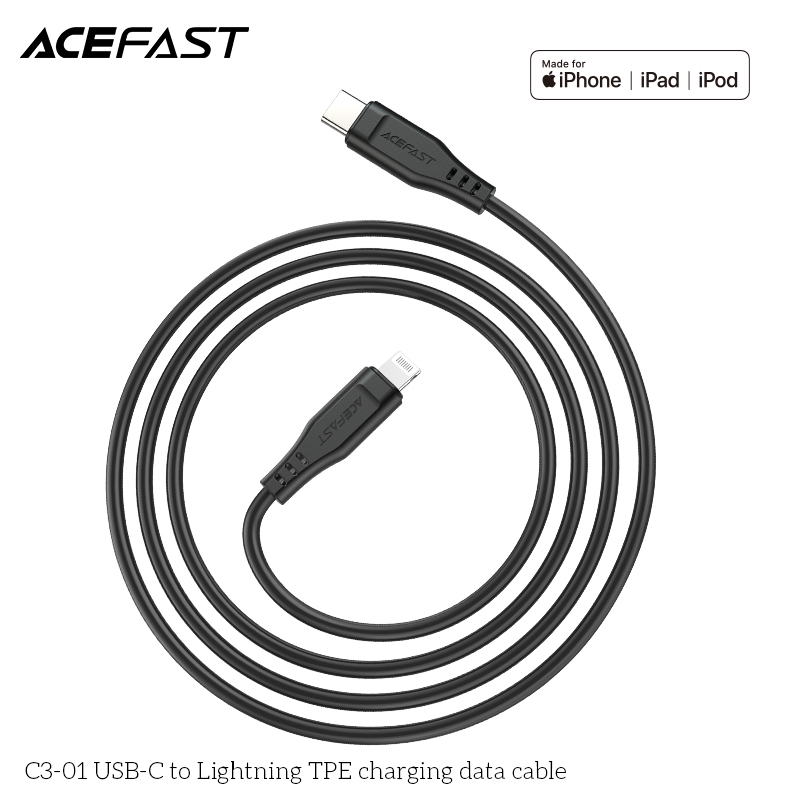 Cáp ACEFAST C3-01 Type C to Lightning, dòng điện lên đến 3A, chiều dài 1.2m, chất liệu TPE, chứng nhận MFI
