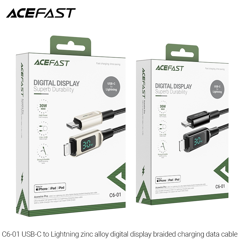 Cáp ACEFAST C6-01 Type C to Lightning, dòng điện lên đến 3A, chiều dài 1.2m