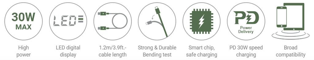 - Tính năng 1: Hỗ trợ sạc nhanh PD 30W, tương thích với iPhone 12 series sạc nhanh PD 20W.