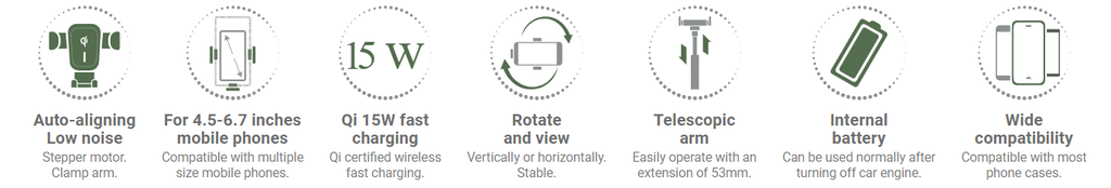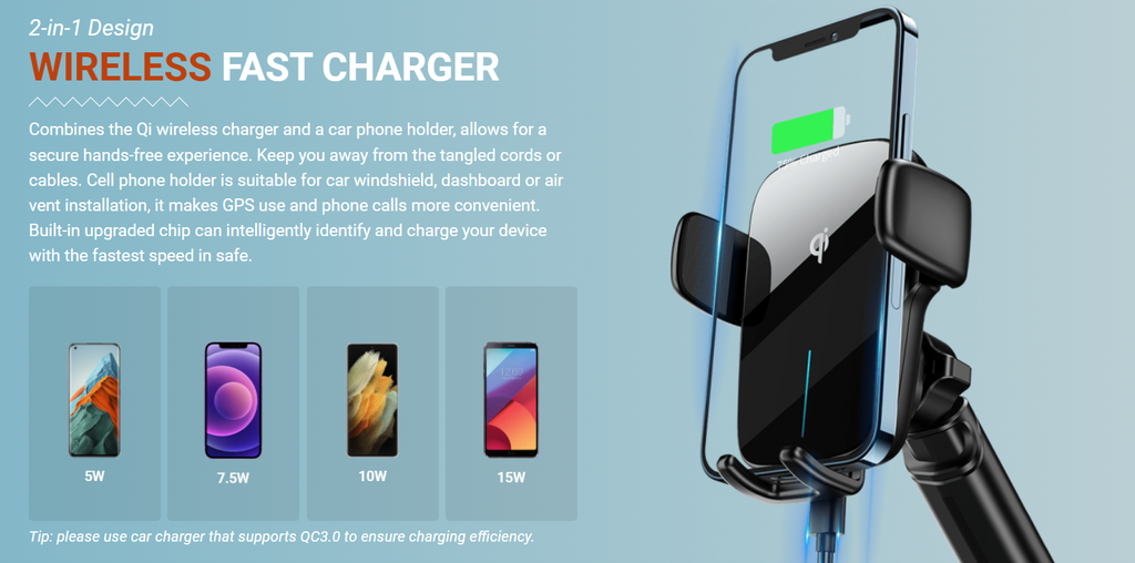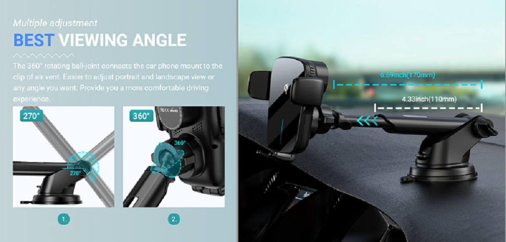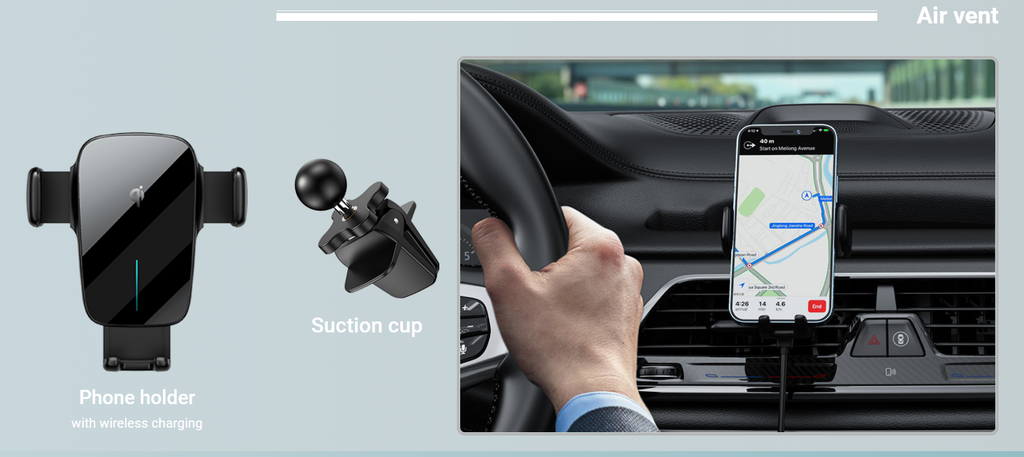 Kết hợp sạc không dây Qi và giá đỡ điện thoại trên ô tô, cho phép trải nghiệm rảnh tay an toàn. Giữ bạn tránh xa các dây hoặc cáp bị rối. Giá đỡ điện thoại thích hợp để lắp ở kính chắn gió ô tô, bảng điều khiển hoặc lắp lỗ thoát khí, giúp việc sử dụng GPS và gọi điện thuận tiện hơn.