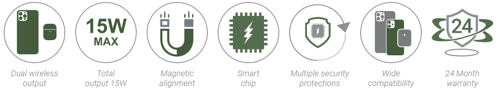 *Lưu ý: Đế sạc phù hợp với các thiết bị có hỗ trợ sạc không dây, riêng chức năng sạc Magsafe chỉ hỗ trợ cho các dòng từ iPhone 12 series trở lên và các dòng tai nghe có hỗ trợ sạc Magsafe. Lực hút từ tính chỉ hỗ trợ tốt khi sử dụng ốp lưng có độ dày <=5mm