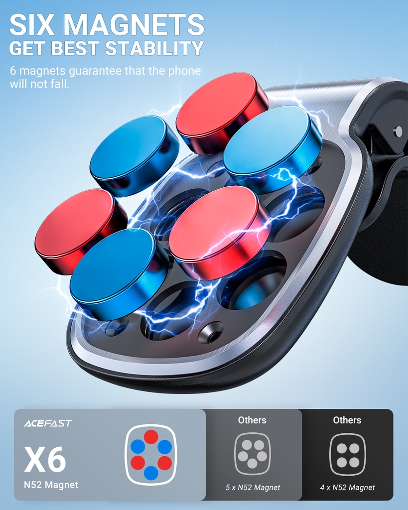 - Tính năng 1: 6 nam châm N52 mạnh, lực hút ổn định hơn.