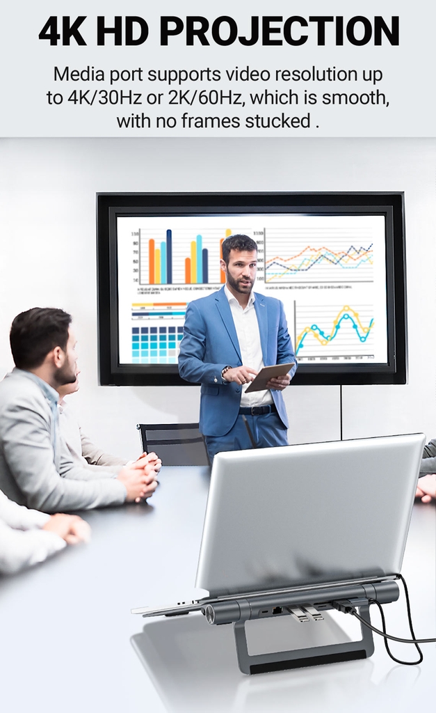 - Cổng chiếu 4K HD hỗ trợ độ phân giả video lên đến 4K/30Hz hoặc 2K/60Hz, mượt mà không bị kẹt khung