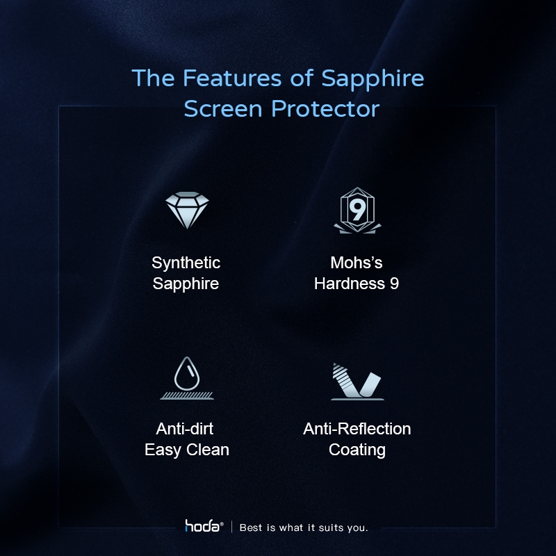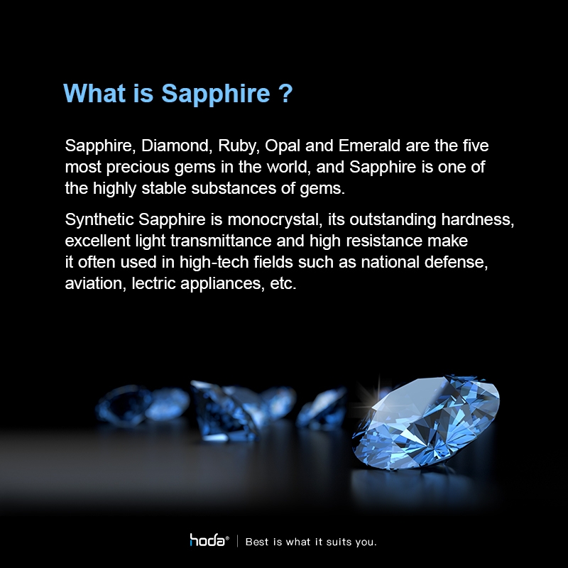 Sapphire tổng hợp có độ cứng 9H chỉ xếp sau Kim cương. Chống trầy xước tốt hơn kính cường lực thông thường. Đây là miếng dán cường lực cao cấp trên thị trường.
