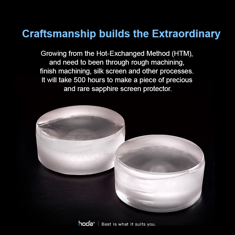 Phát triển từ phương pháp trao đổi nóng (HTM) và cần phải qua gia công thô, gia công hoàn thiện, in lụa và các quy trình khác. Sẽ mất 500h để tạo ra một món đồ quý giá cũng như miếng dán cường lực Sapphire này