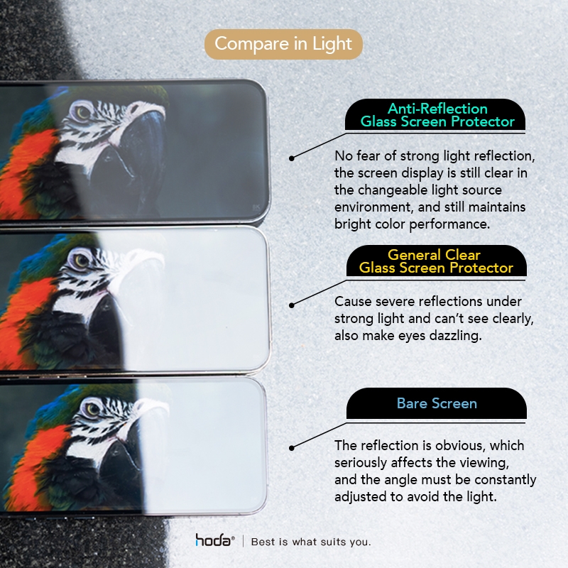 Kính HODA: Dù ánh sáng mạnh và môi trường có thể thay đổi, thì màn hình vẫn hiển thị rõ ràng, duy trì hiệu suất màu sắc tươi sáng.