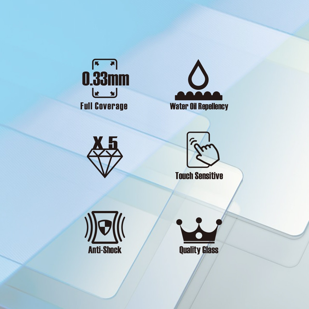 - Độ dày kính/bo viền: 0.33mm/2.5D