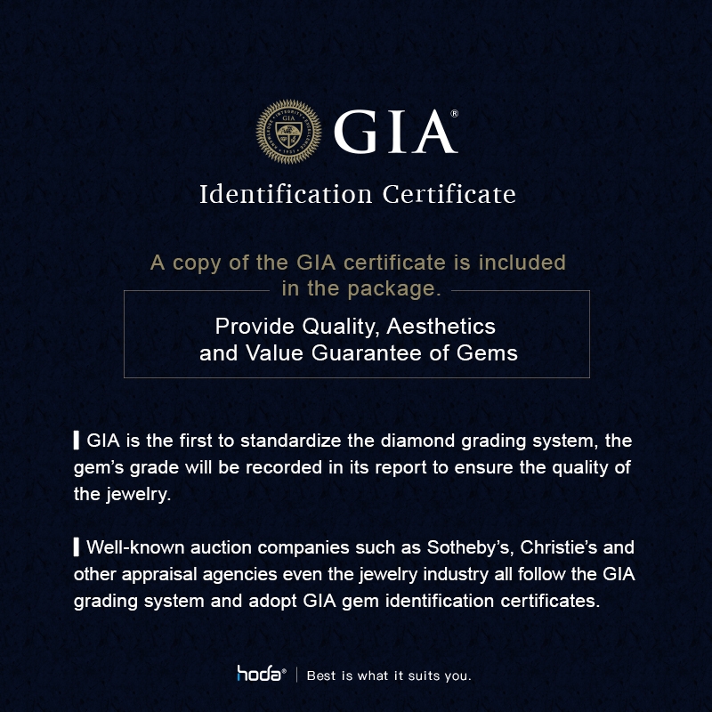 Một bản copy chứng nhận GIA được bỏ kèm trong hộp sản phẩm. Cung cấp chất lượng, tính thẩm mỹ và đảm bảo đúng giá trị của đá quý.