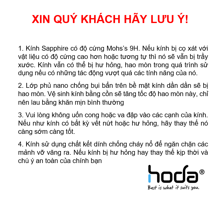 Sapphire tổng hợp có độ cứng 9H chỉ xếp sau Kim cương. Chống trầy xước tốt hơn kính cường lực thông thường. Đây là miếng dán cường lực cao cấp trên thị trường.