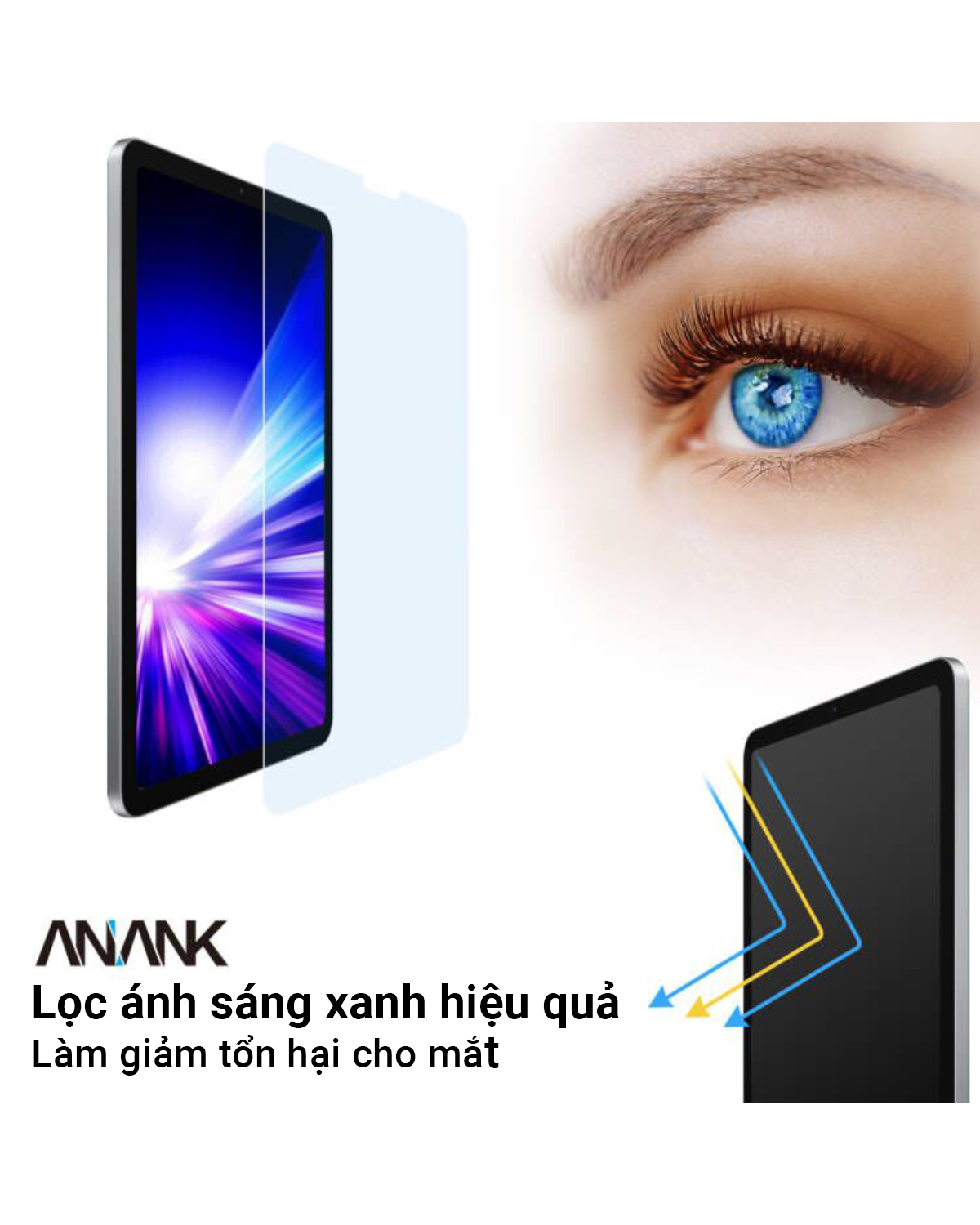 Chứng mỏi mắt kỹ thuật số do tiếp xúc lâu với màn hình thiết bị có thể gây lão hóa mắt sớm, khô và kích ứng mắt, gián đoạn giấc ngủ và mờ mắt. Với lớp Eyesafe bảo vệ, kính sẽ lọc ánh sáng có thể nhìn thấy (HEV) và năng lượng cao có hại khỏi màn hình iPad của bạn.