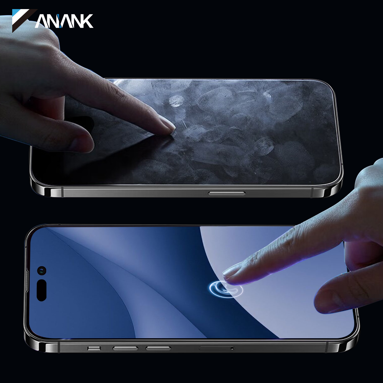 Công nghệ chống bám dấu vân tay ANANK là một phương pháp xử lý bề mặt độc đáo — được sử dụng riêng bởi ANANK — để che đi khả năng hiển thị của dấu vân tay trên lớp bảo vệ màn hình của bạn. Được phát triển bởi JAPAN Nanotechnologies, quy trình ưa khô này trải dầu từ dấu vân tay lên bề mặt mỏng đến mức cho phép ánh sáng truyền qua dầu, làm cho dấu vân tay hầu như không nhìn thấy.