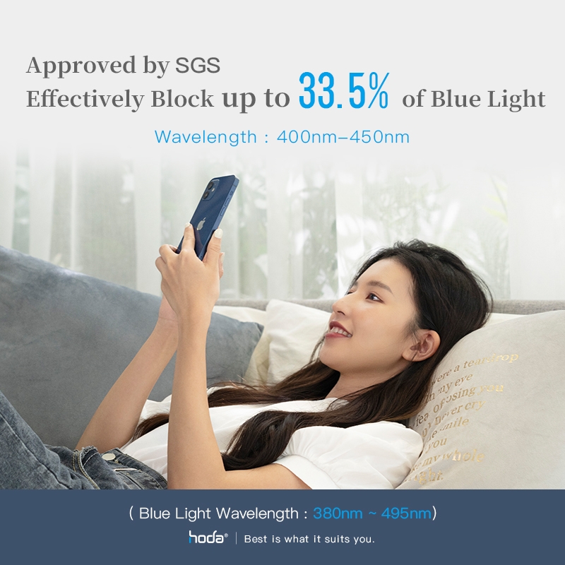 Đã được phê duyệt bởi SGS. Hiệu quả chặn ánh sáng xanh lên đến 33.5%, các bước sóng từ 400nm-450nm