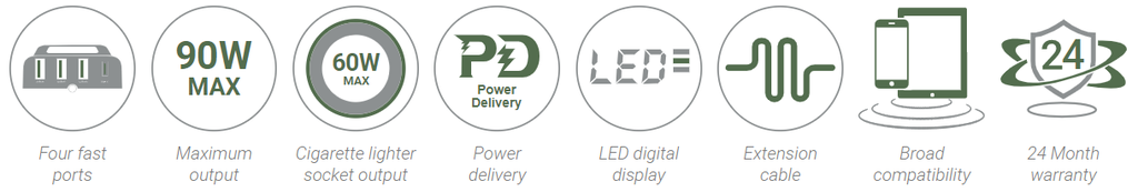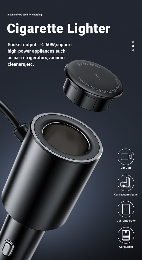 Cổng ra <60W có thể hỗ trợ các thiết bị có công suất cao như tủ lạnh trên xe ô tô, máy bút bụi,...