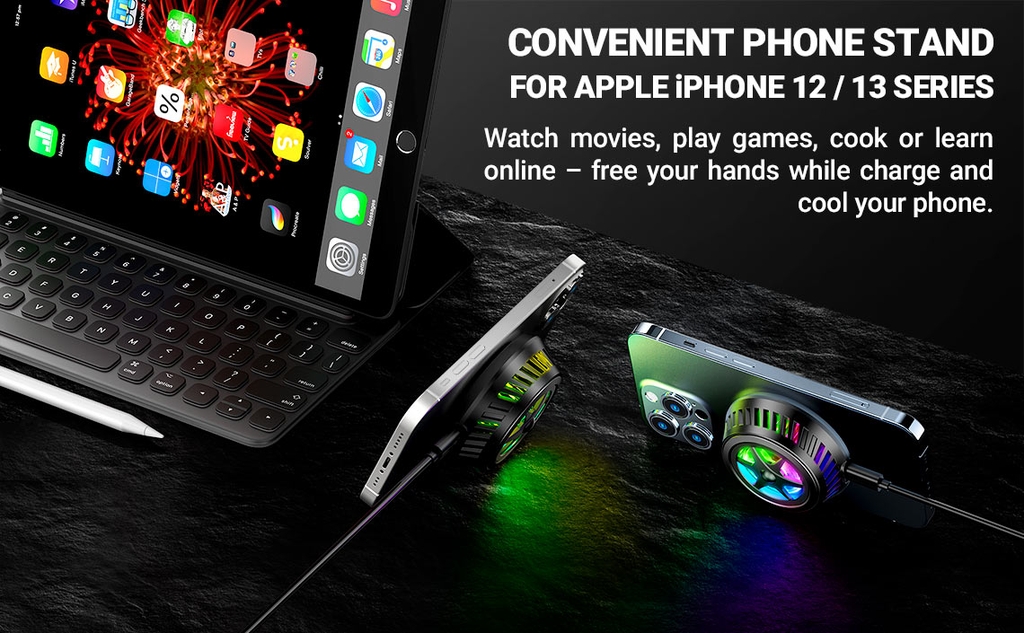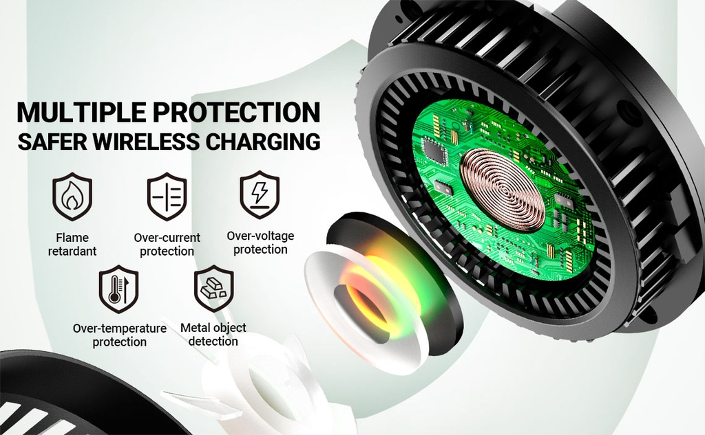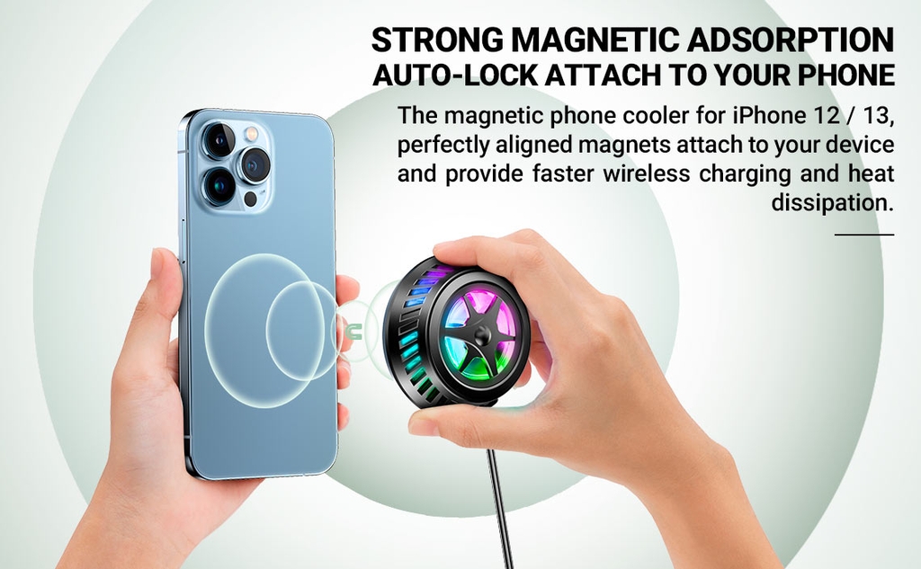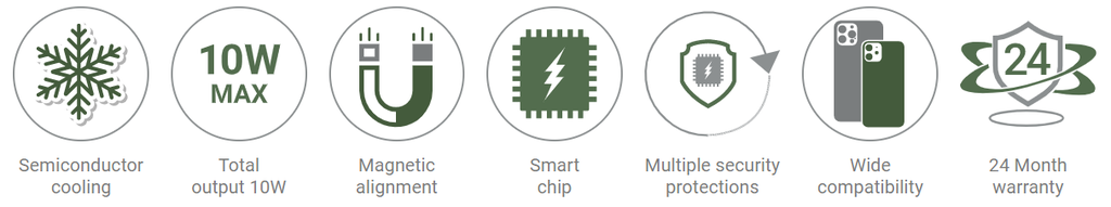- Các nam châm được căn chỉnh hoàn hảo, tạo lực hút chắc chắn với thiết bị điện thoại di động, cung cấp khả năng sạc không dây và tản nhiệt nhanh hơn