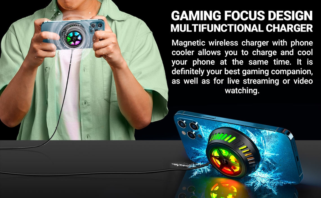 - Sạc cho phép bạn vừa sạc vừa làm mát thiết bị cùng lúc, sự lựa chọn tối ưu nhất khi chơi game, live streaming hoặc xem video.