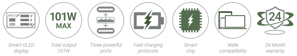 - Thiết kế Chip thông minh phân bổ công suất giữa 3 cổng để tốc độ sạc nhanh hơn.
