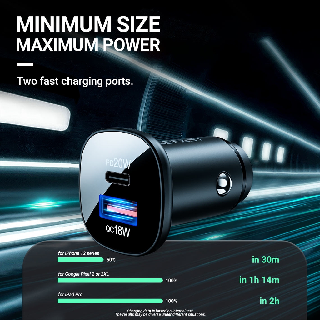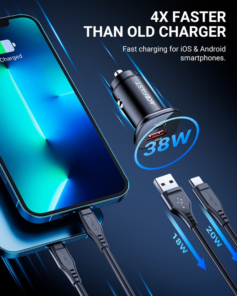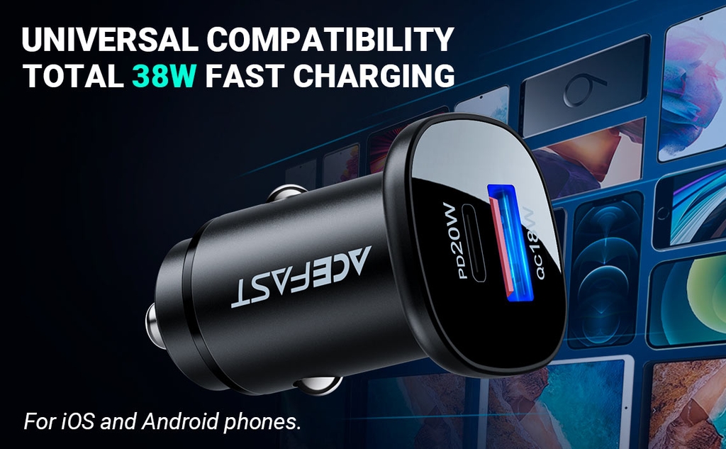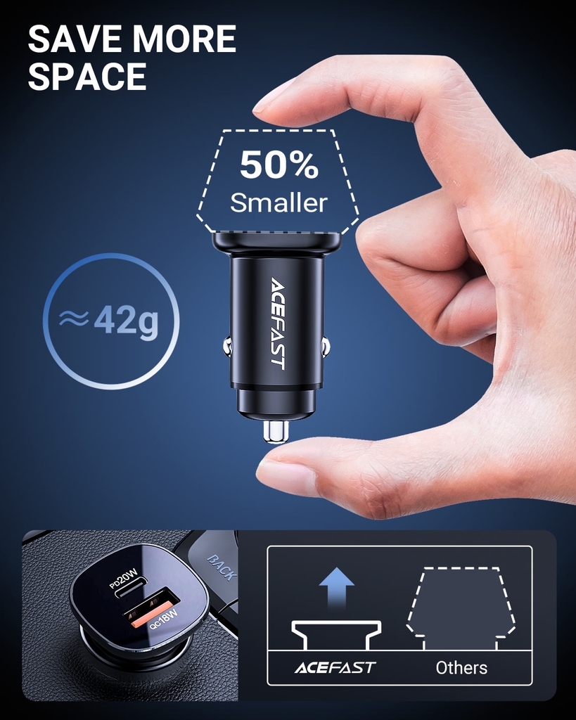 Bộ sạc ô tô ACEFAST B1, đầu ra USB-C 20W và USB-A 18W, vật liệu thân bằng hợp kim kẽm, hỗ trợ hầu hết các giao thức sạc nhanh