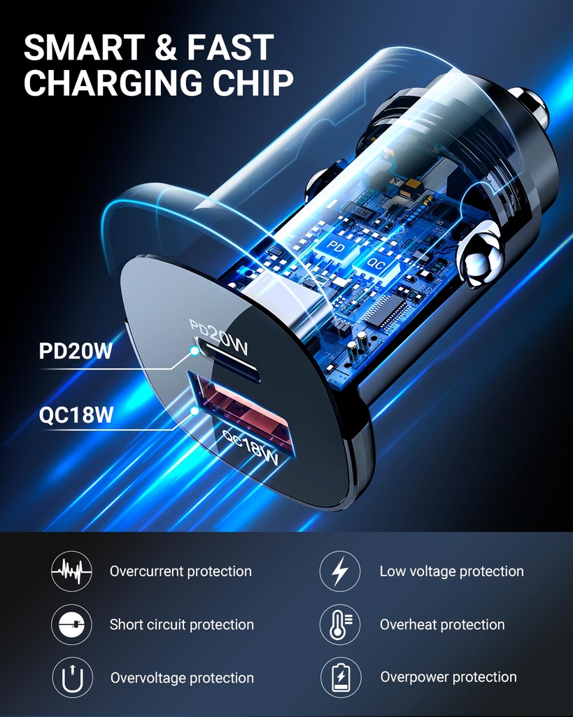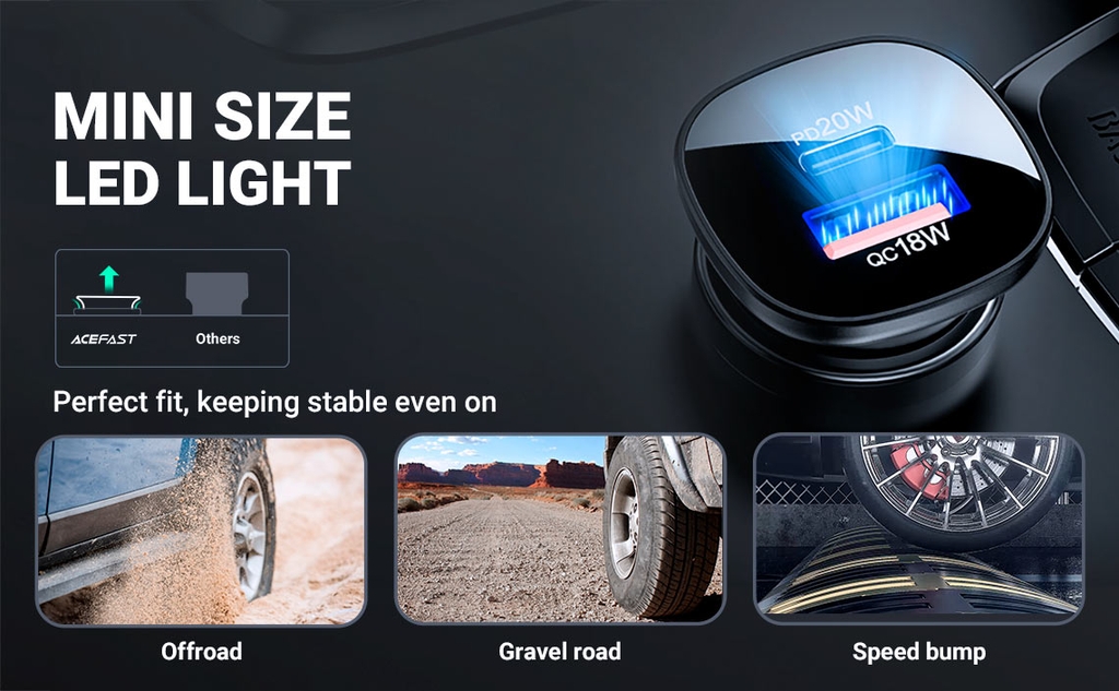Có trang bị đèn LED nhỏ, cài đặt sạc trên ô tô hoàn chỉnh và chắc chắn dù cho xe di chuyển qua các loại bề mặt đường khác nhau. Kích thước sạc nhỏ, tiết kiệm không gian
