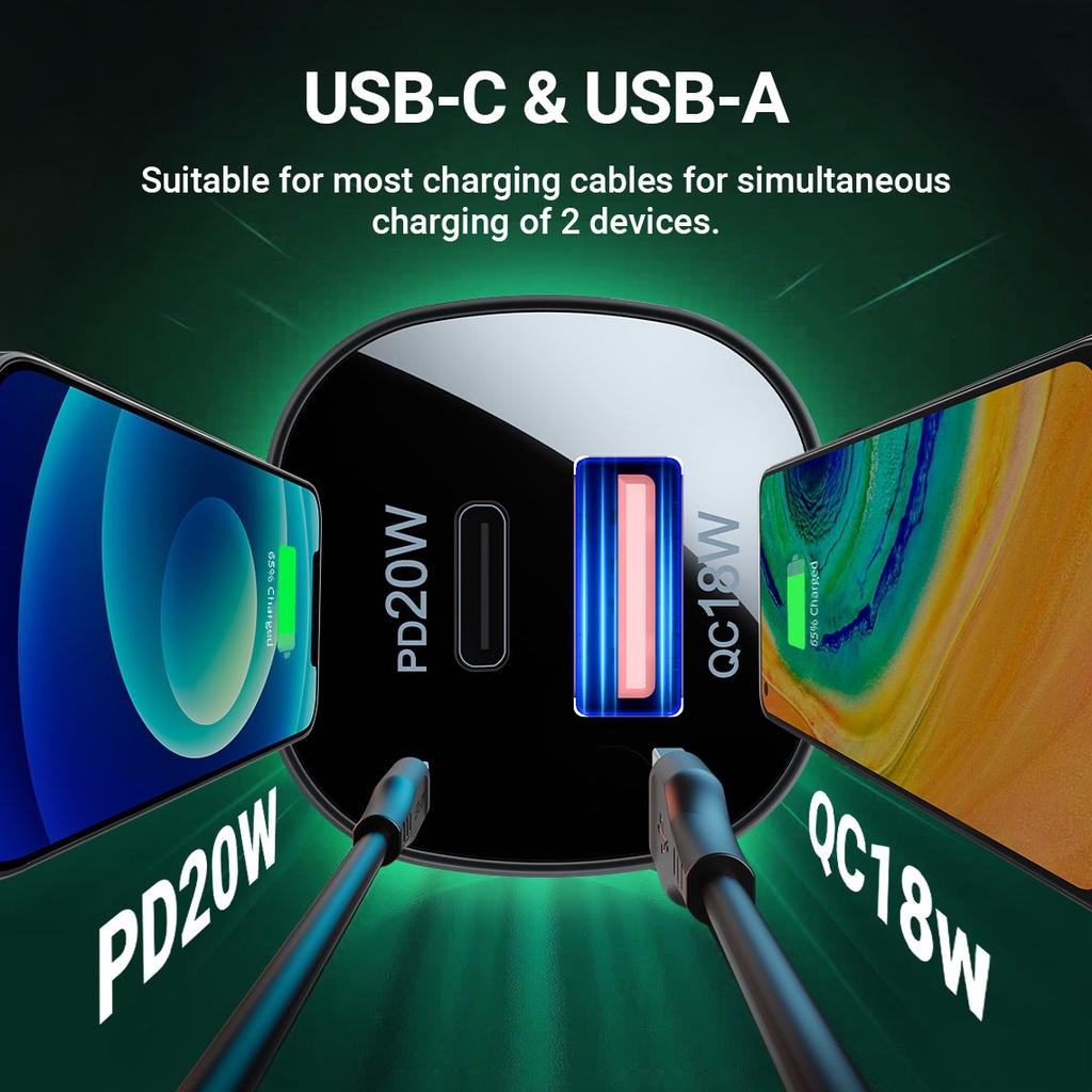 Tương thích nhiều thiết bị với 2 cổng sạc USB-C & USB-A