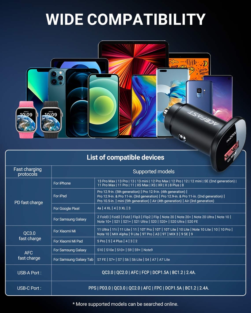 - Chủ yếu phù hợp để sạc nhanh PD cho iPhone, Samsung, iPad và các thiết bị di động khác. Nó cũng có thể được sử dụng để sạc nhanh khẩn cấp PD cho máy tính xách tay USB-C