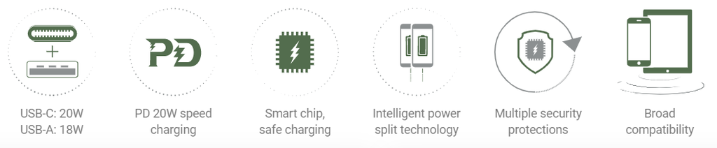 USB-C: 20W (tương thích cho PD20W / cho QC4 + / cho AFC / cho FCP).