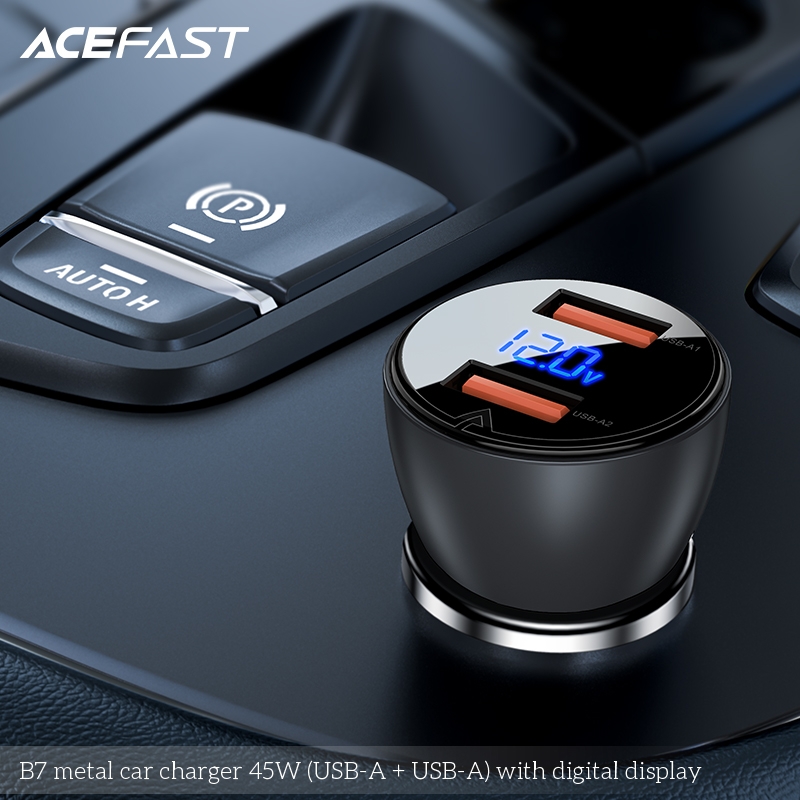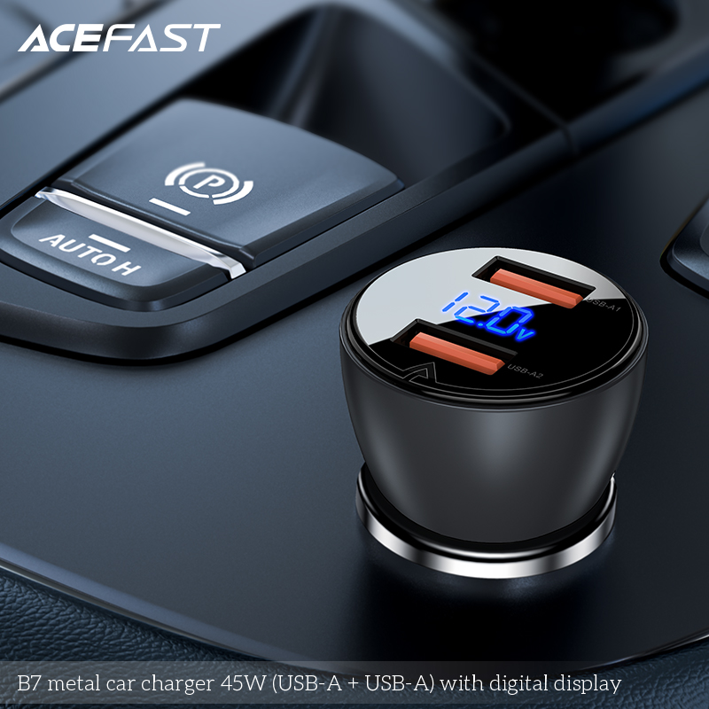 Bộ sạc ô tô ACEFAST B7, 2xUSB-A 45W với đèn LED hiển thị điện áp/dòng điện