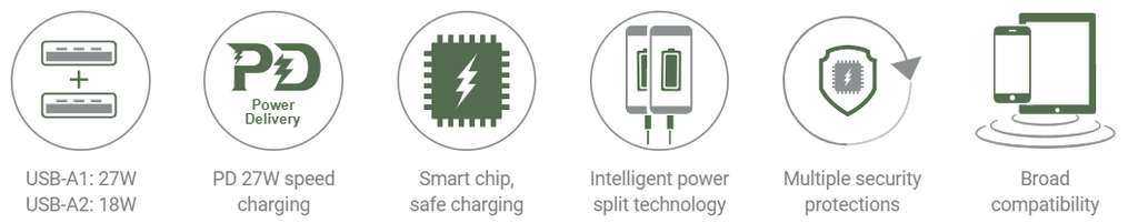 - Output: USB-A1: 27W (tương thích với QC3.0 / AFC / FCP / SCP).