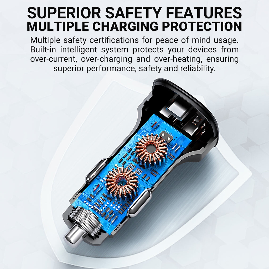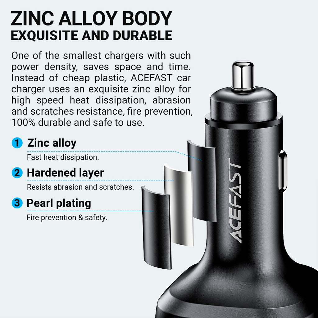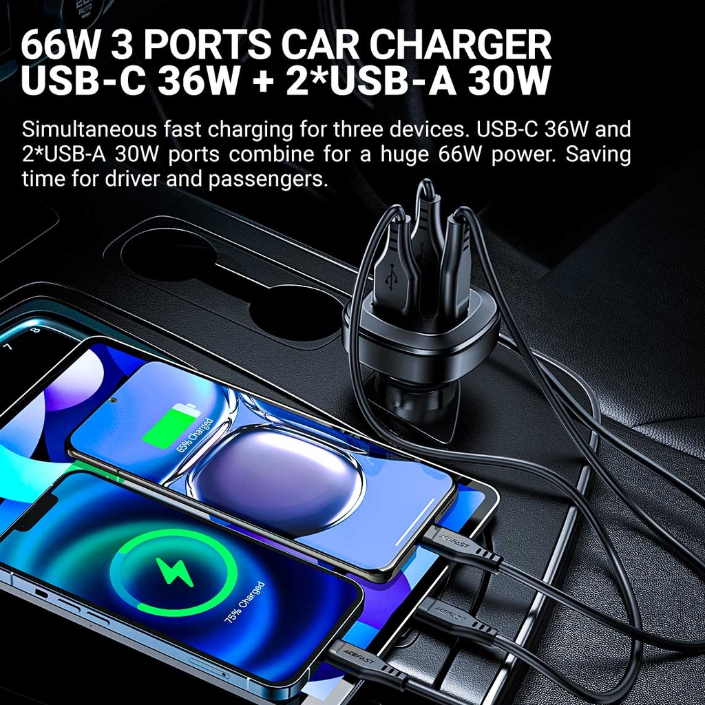 Sạc ô tô ACEFAST B9, tổng công suất 66W, vật liệu thân bằng hợp kim nhôm.