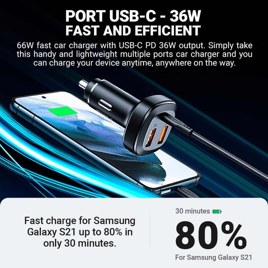 - Sạc nhanh cho Samsung S21 lên đến 80% chỉ trong 30 phút