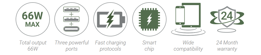 - Có thể đồng thời sạc nhanh cho 3 thiết bị cùng lúc