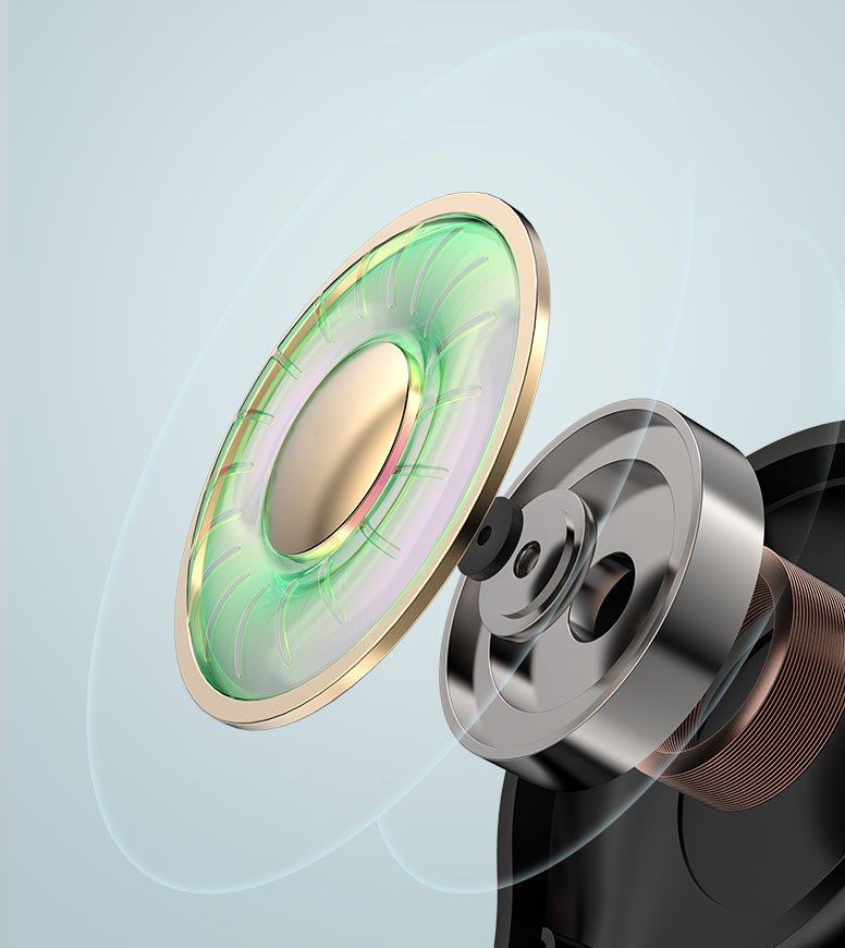 Trình điều khiển 6mm với cấu trúc 3 lớp giúp tăng cường đầu ra của âm bổng và âm trầm. Nhận ra âm thanh mạnh mẽ.
