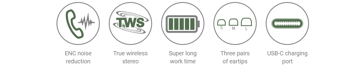 Tự do chuyển bài hát, trả lời / từ chối cuộc gọi, kích hoạt trợ lý giọng nói. Hai micrô chất lượng cao giúp tăng cường giọng nói và khử tiếng ồn tuyệt vời. Thiết kế tiện dụng và siêu nhẹ, không phải chịu áp lực suốt cả ngày dài.