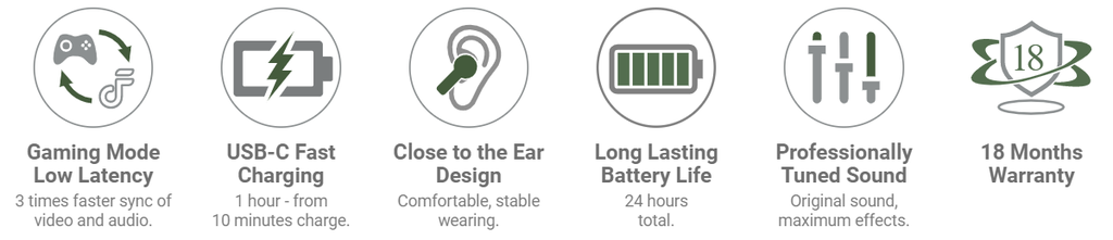 - Dung lượng pin: Hộp sạc 500mAh, tai nghe 50mAh.